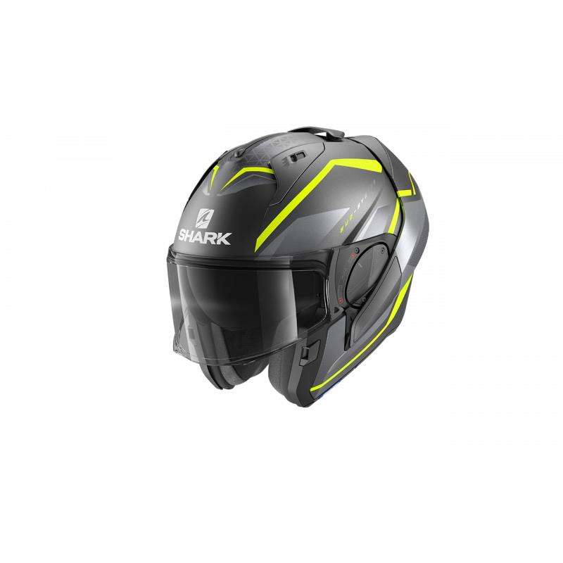 Vybavení helmy: odklápěcí helma, sluneční clona, podbradní pásek s nastavitelnou mikropřezkou, EASY FIT - snadné vložení brýlí, připraveno pro SHARKTOOTH, vyjímatelný antialergický interiér, AUTOSEAL system - těsnění hledí, CFD spoiler, integrovaná ochrana proti větru v krytu brady, automatická mechanika hledí Auto-Up